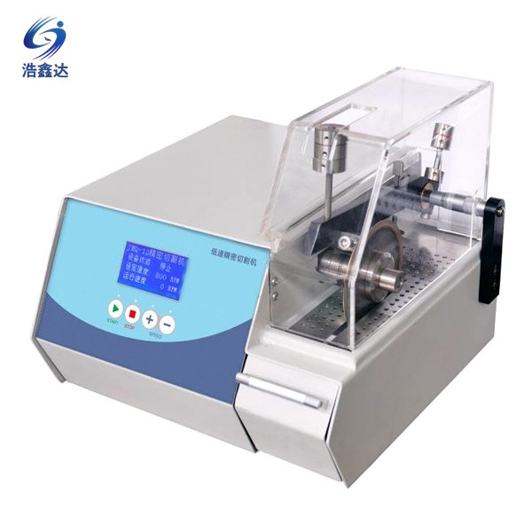 低速精密切割機(jī)主要用來切割小型圓柱、方形金屬體或電子線路板材料。該機(jī)采用砝碼塊負(fù)荷恒定切割力自動(dòng)切割,切割完成后自動(dòng)停止。采用千分尺裝置,可調(diào)整試樣切割的厚薄,做到精密切割,可作為透射電鏡的配套制樣設(shè)備。該設(shè)備轉(zhuǎn)速可控,配備安全透明防護(hù)罩;為避免在切割中因過熱而燒傷試樣,在切割過程中金剛石切割片轉(zhuǎn)動(dòng)帶出冷卻水,使切割片和試樣材料得到冷卻,切割后的試樣表面光亮、平整,無燒傷,是切割小型材料和電子線路板的上佳設(shè)備。