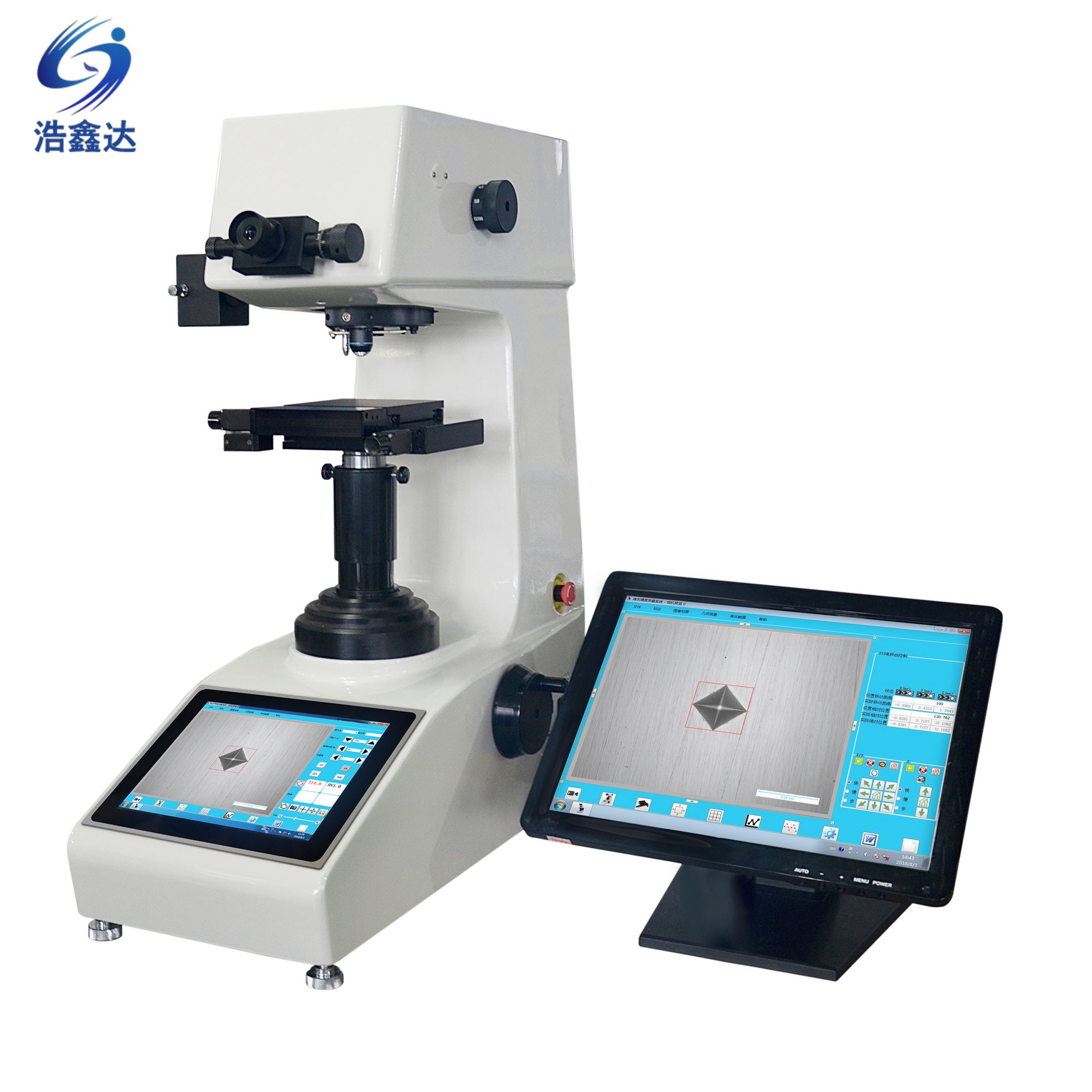 ● X-Y電動試臺,自動對焦,儀器自動測量,完全實現了維氏硬度測試的自動化。